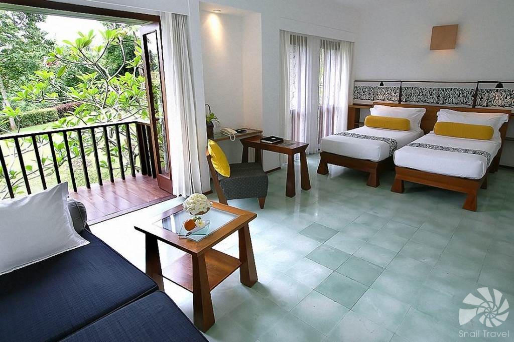 Hotel nabízí klientům ubytování v hlavní budově v pokojích nebo v překrásných vilkách se soukromými zahradami a bazény. V hotelu jsou k dispozici dvě restaurace, kavárna, bar, dva bazény, hotelový trezor, autobusové spojení do centra vesnice Ubud.